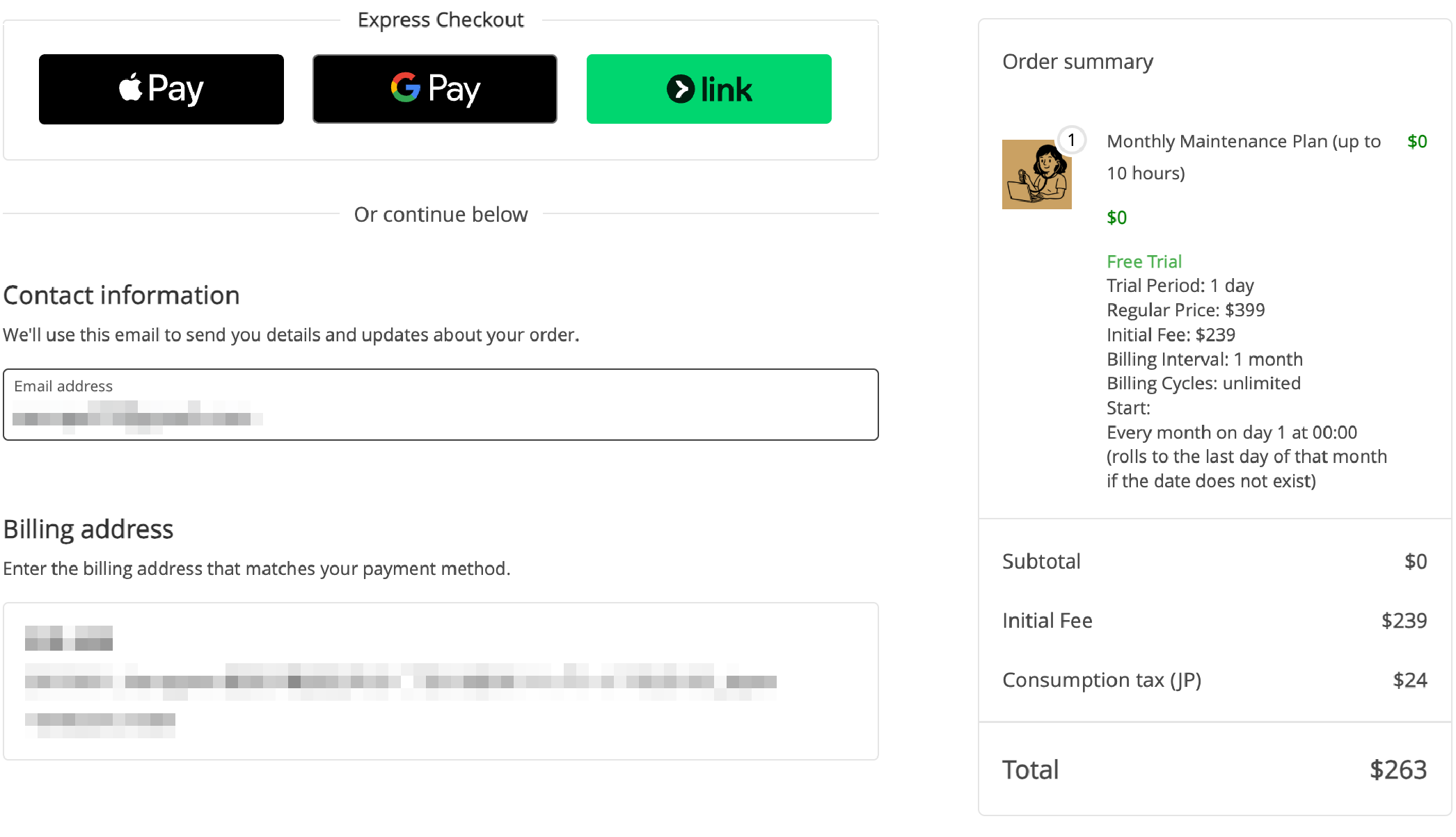 | Initial fee (sign-up fee) settings | ○ | ○ |