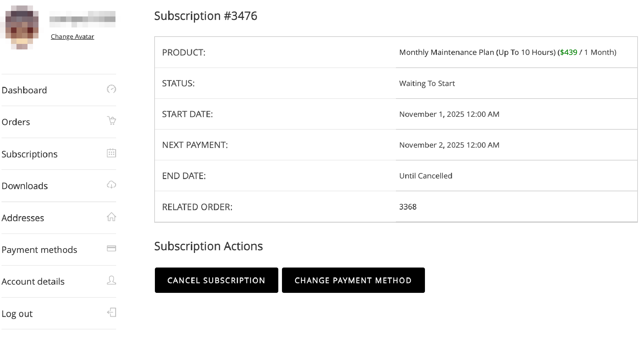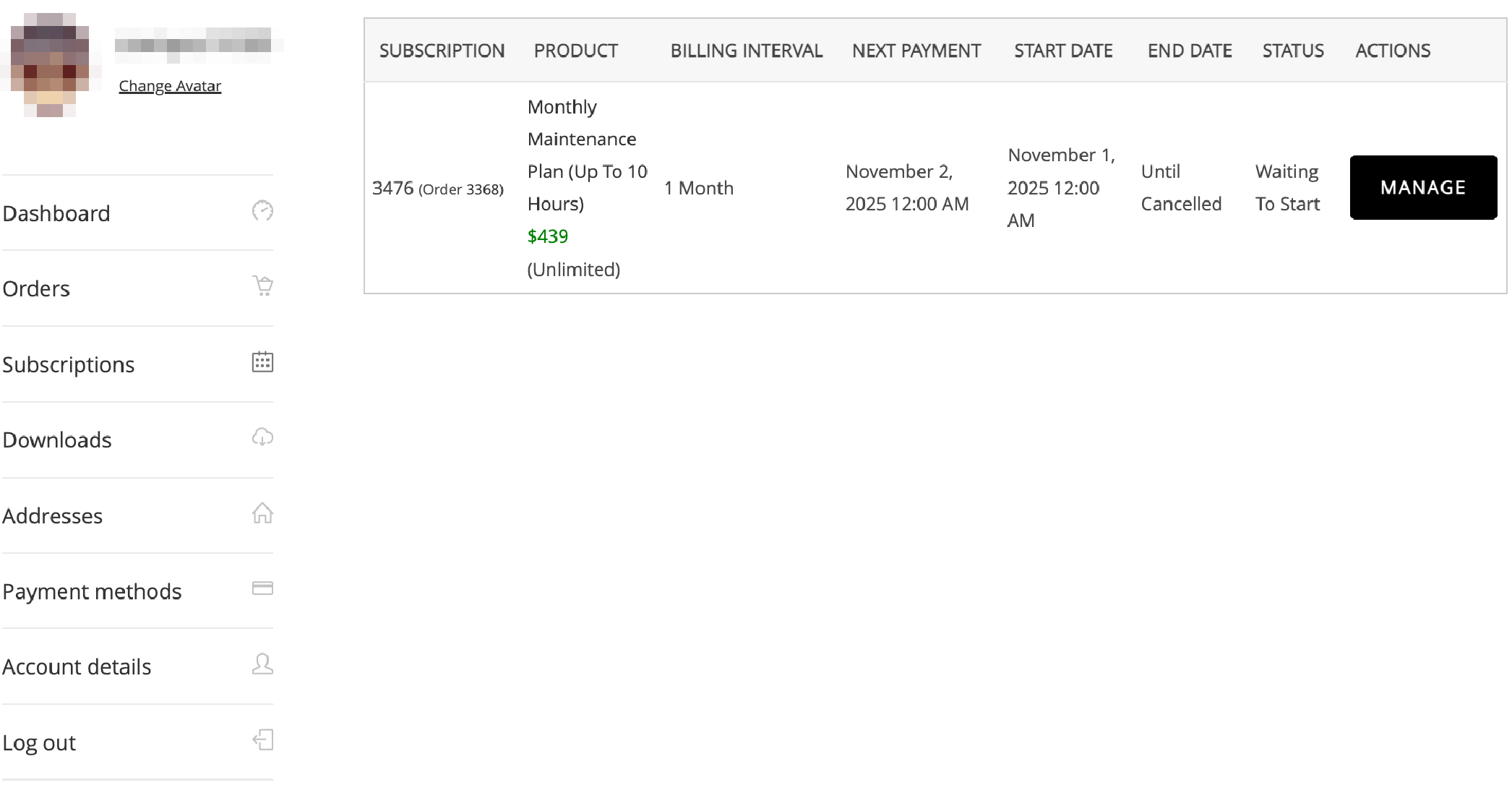 | Add "Subscriptions" section to My Account page (includes Cancel button) | ○ | ○ |